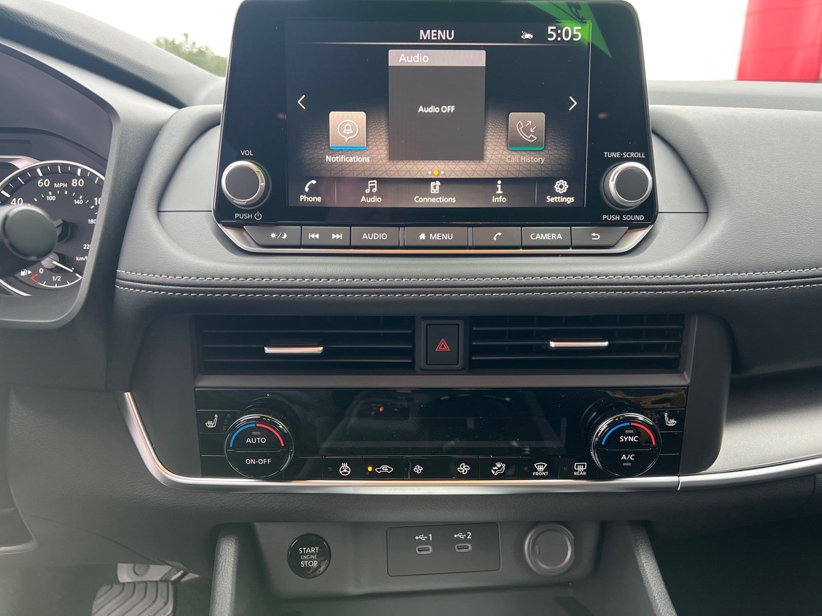 - Radio: AM/FM NissanConnect -inc: 6 speakers plus 2 tweeters, Apple CarPlay, Android Auto, 8" color touch screen display, Bluetooth®, 2 front USB type-C, Wi-Fi hotspot and NissanConnect Services powered by SiriusXM